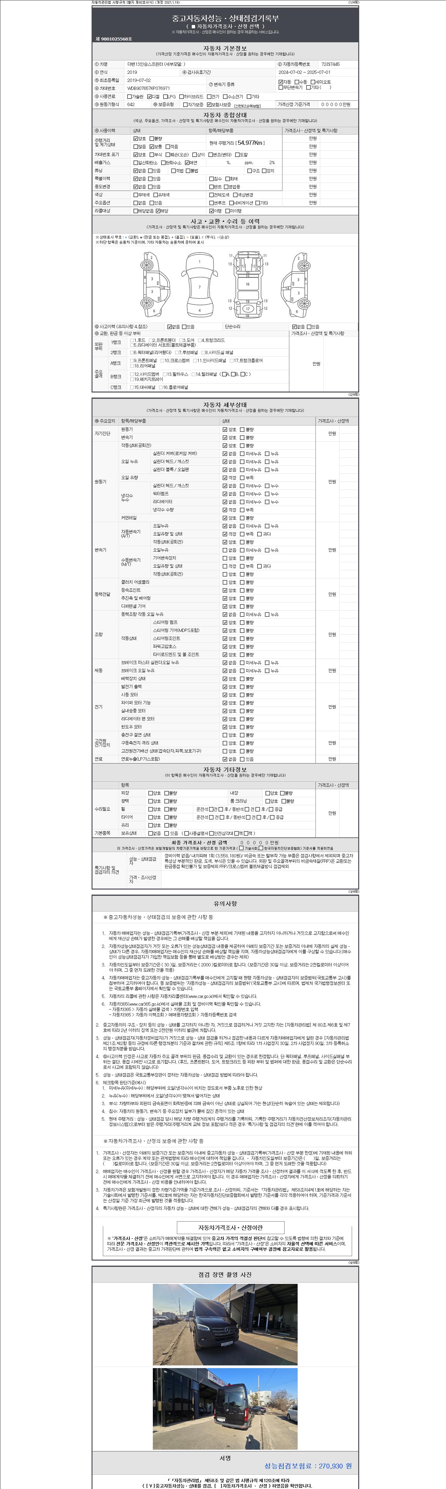 | 주행거리 | 54,758 km | 차량번호 | 72라7445 | 사고유무 | 성능기록부 참조 | 제시번호 | 제 2147483647 호 |