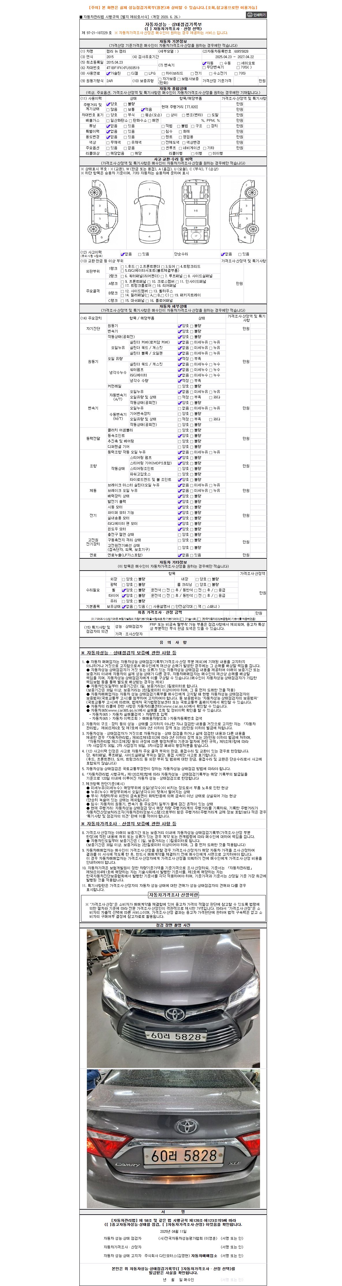 - 2. 차량 등록증이나 성능점검지 등을 상담자에게 요청및 확인하시고 사전에 미리 점검 하시기를 권유드립니다.