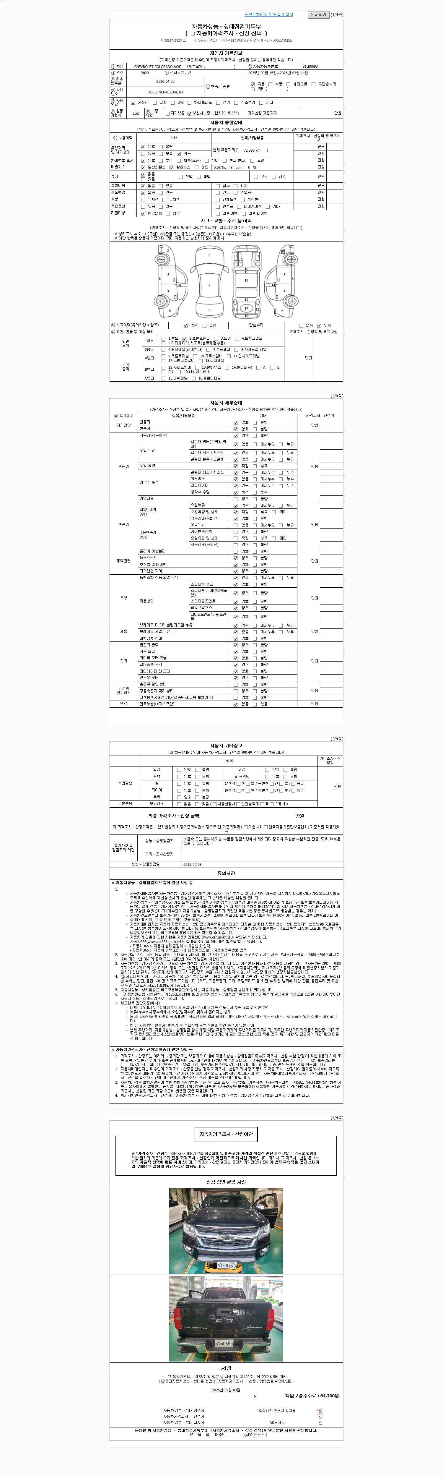 | 주행거리 | 72,396 km | 차량번호 | 81버0693 | 사고유무 | 성능기록부 참조 | 제시번호 | 제 2025048208 호 |
