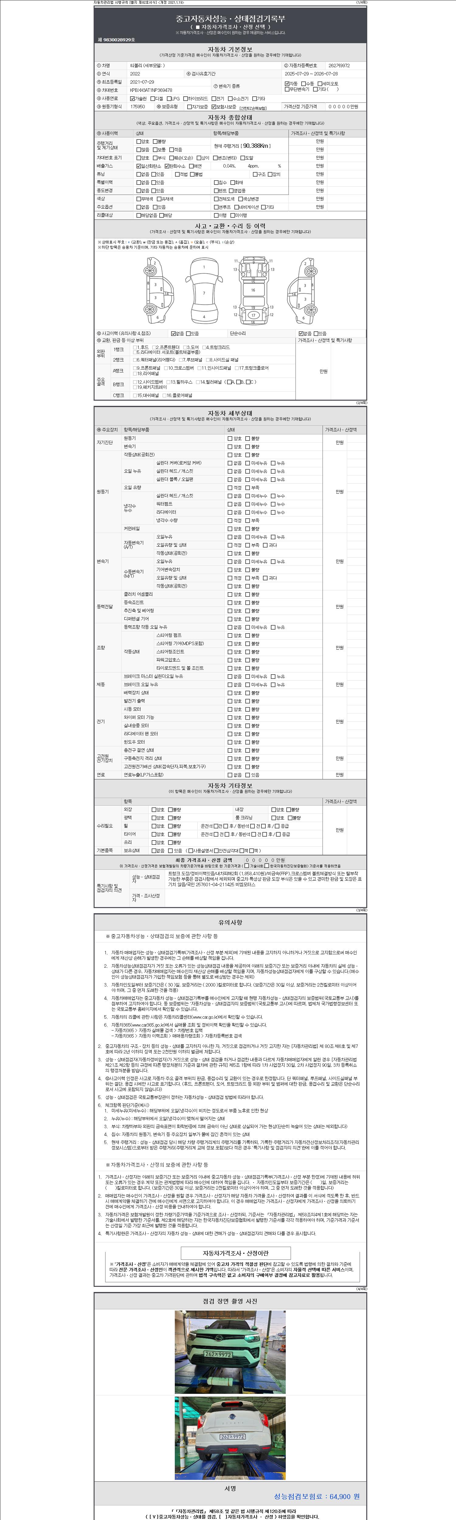 - 2. 차량 등록증이나 성능점검지 등을 상담자에게 요청및 확인하시고 사전에 미리 점검 하시기를 권유드립니다.