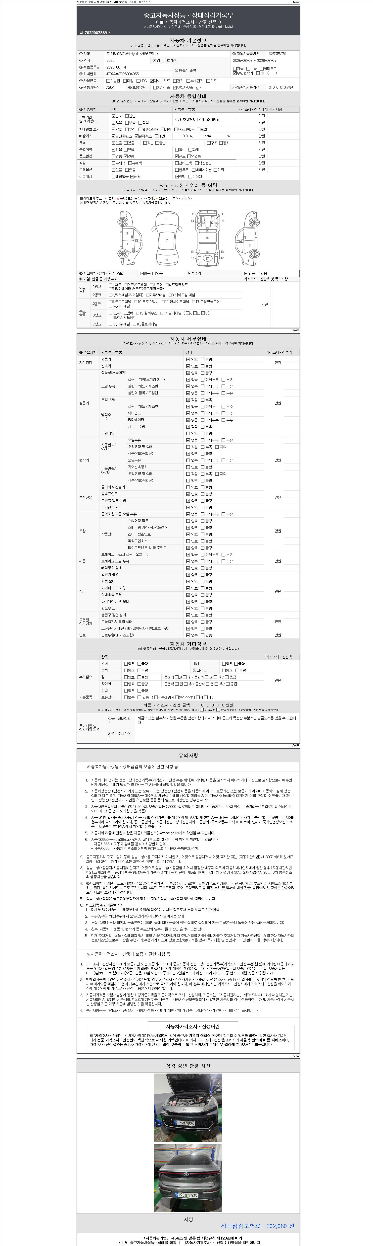 - 2. 차량 등록증이나 성능점검지 등을 상담자에게 요청및 확인하시고 사전에 미리 점검 하시기를 권유드립니다.