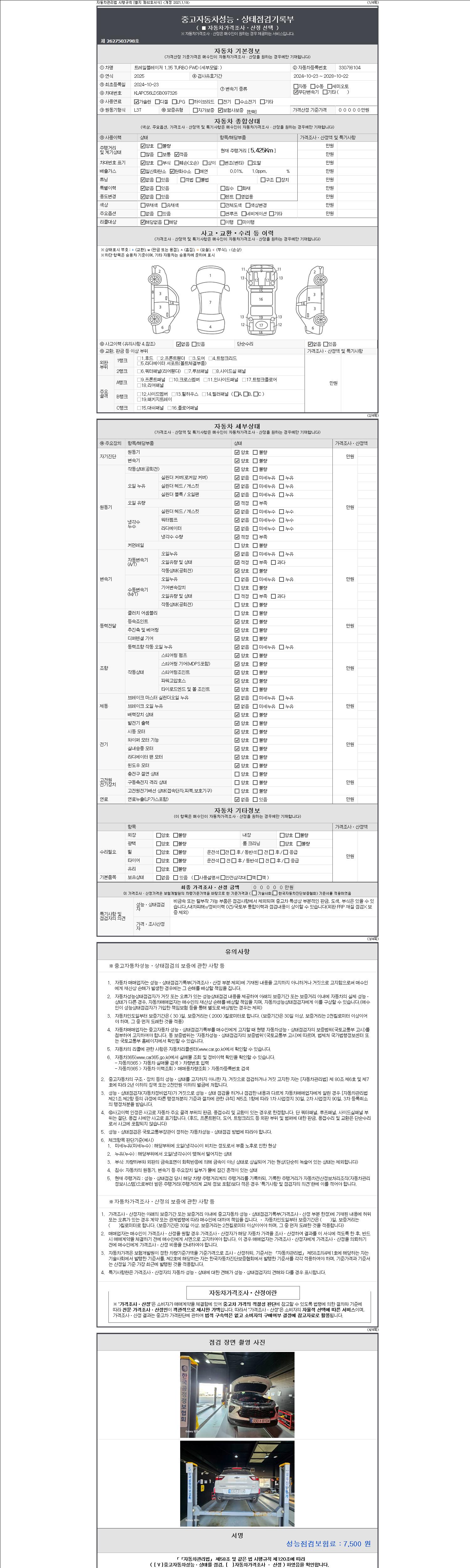 - 2. 차량 등록증이나 성능점검지 등을 상담자에게 요청및 확인하시고 사전에 미리 점검 하시기를 권유드립니다.