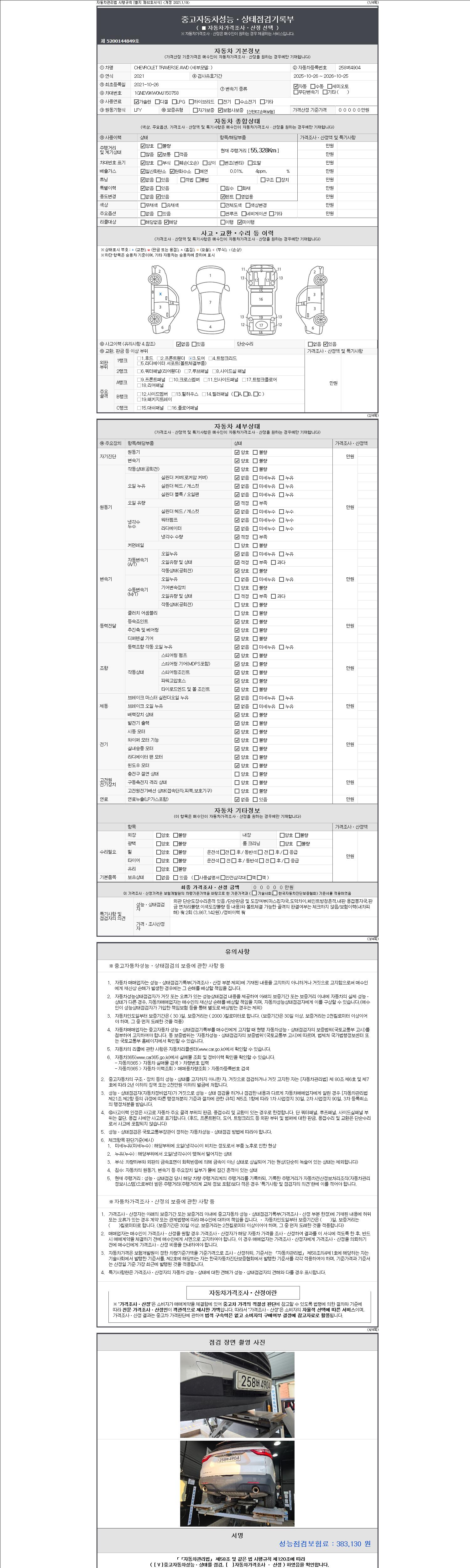 | 주행거리 | 55,325 km | 차량번호 | 258버4904 | 사고유무 | 성능기록부 참조 | 제시번호 | 제 2147483647 호 |