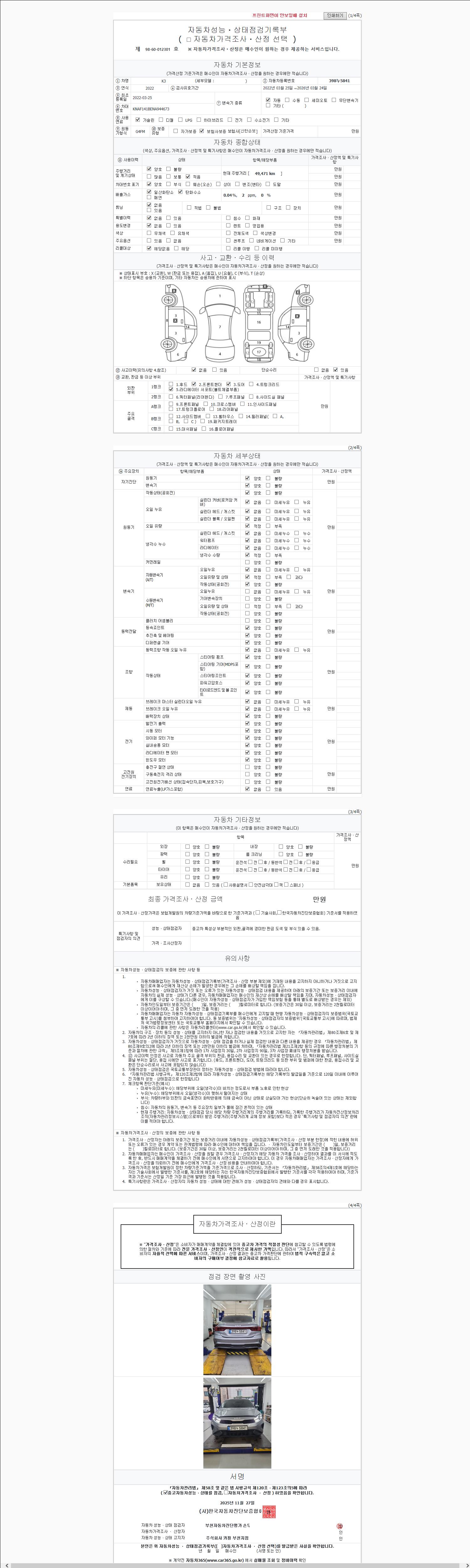 - 2. 차량 등록증이나 성능점검지 등을 상담자에게 요청및 확인하시고 사전에 미리 점검 하시기를 권유드립니다.