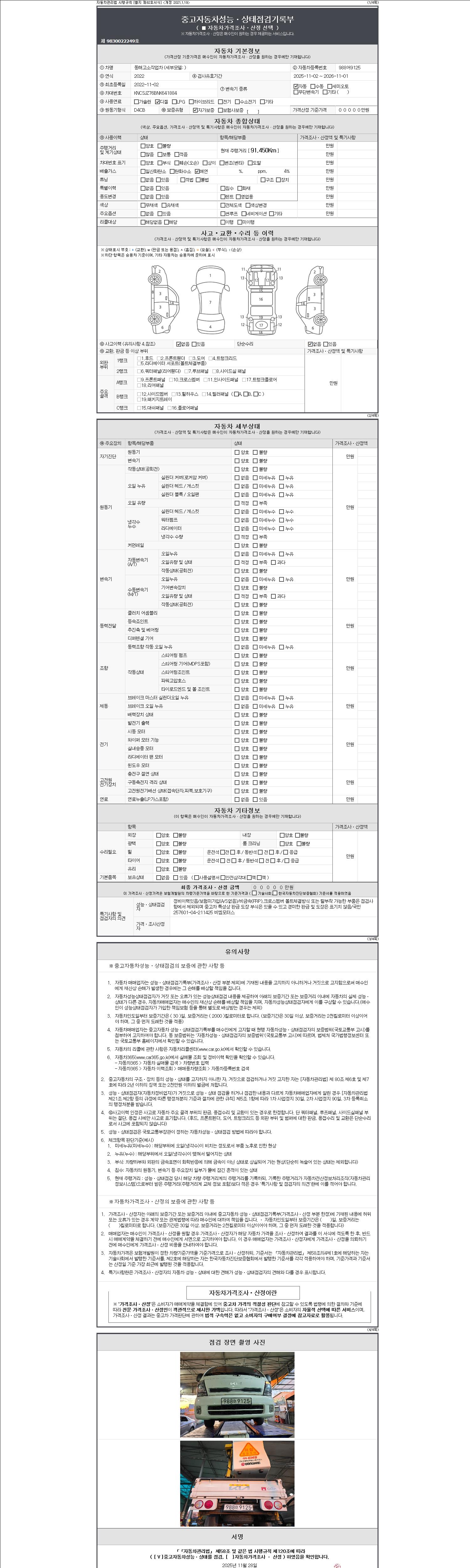 | 주행거리 | 91,450 km | 차량번호 | 988어9125 | 사고유무 | 성능기록부 참조 | 제시번호 | 제 2147483647 호 |
