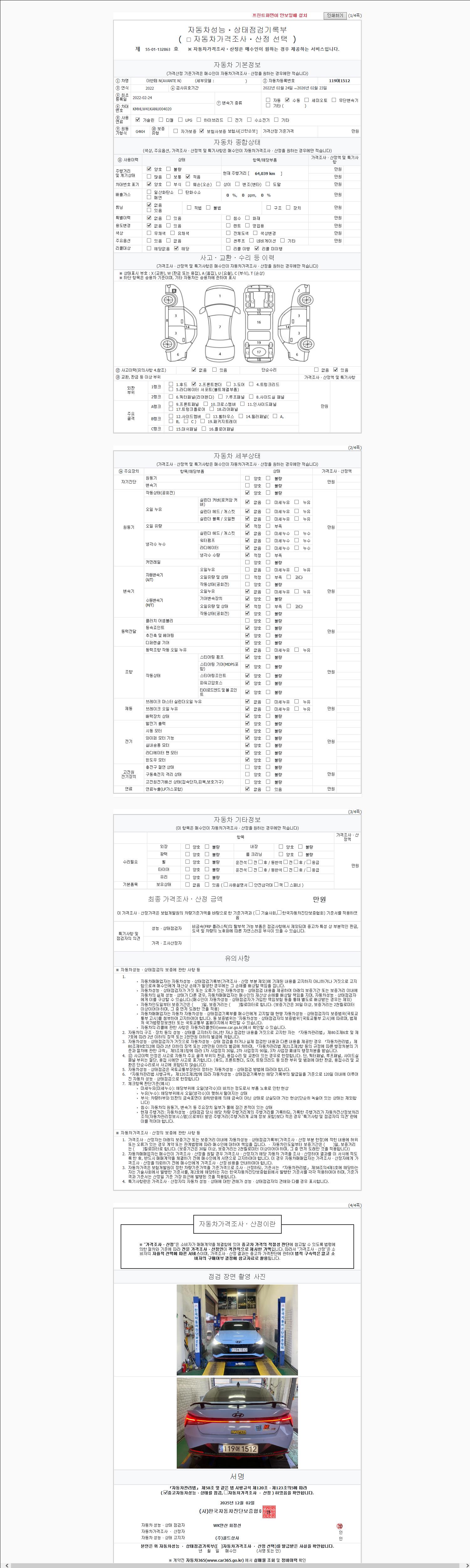 -중고자동차 매매업자를 통해 차량을 구입하실 경우 반드시 "중고자동차 성능, 상태점검 기록부"를 교뷰 받으셔야 하며, 매매업자는 반드시 의무 교부 하여야 압니다.