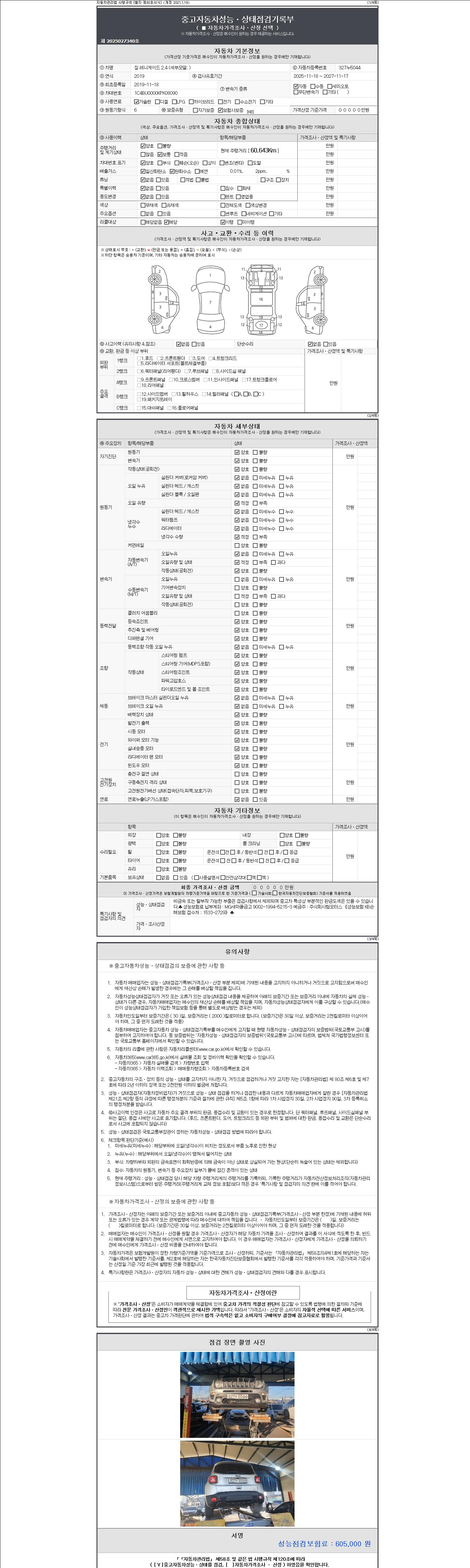 - 사고유무 : 성능기록부 참조