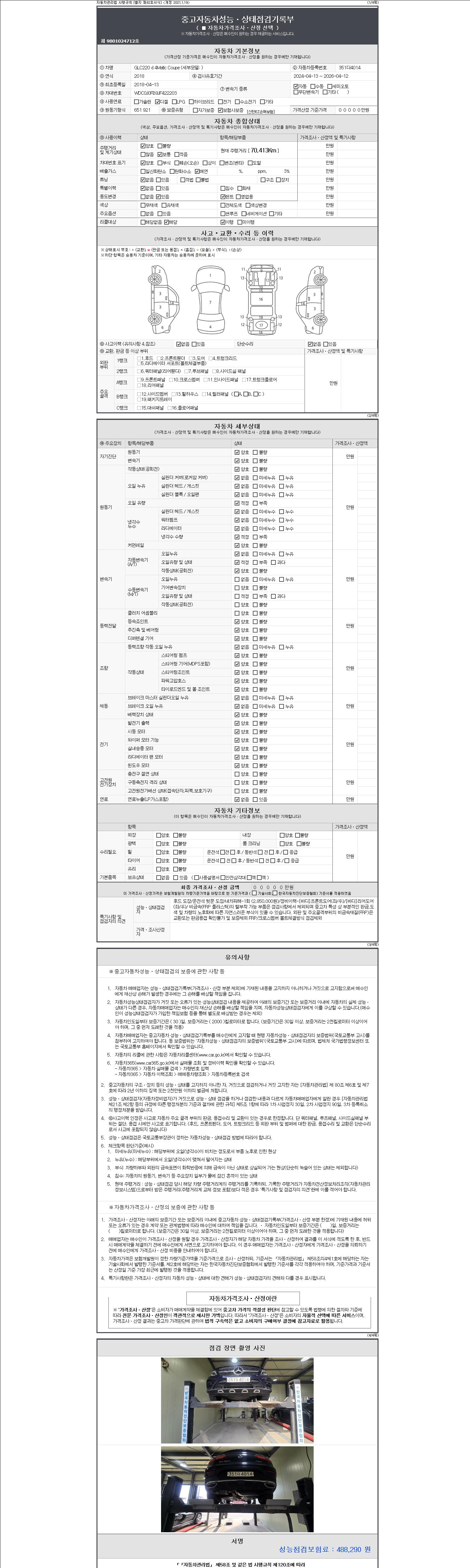 - 2. 차량 등록증이나 성능점검지 등을 상담자에게 요청및 확인하시고 사전에 미리 점검 하시기를 권유드립니다.