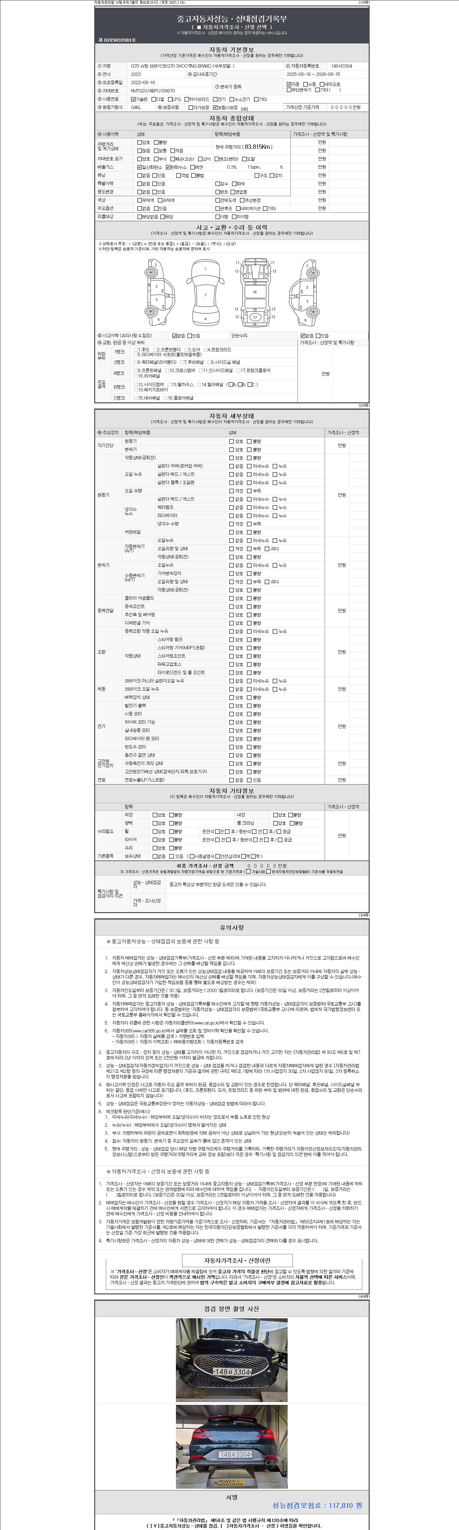 - 사고유무 : 성능기록부 참조