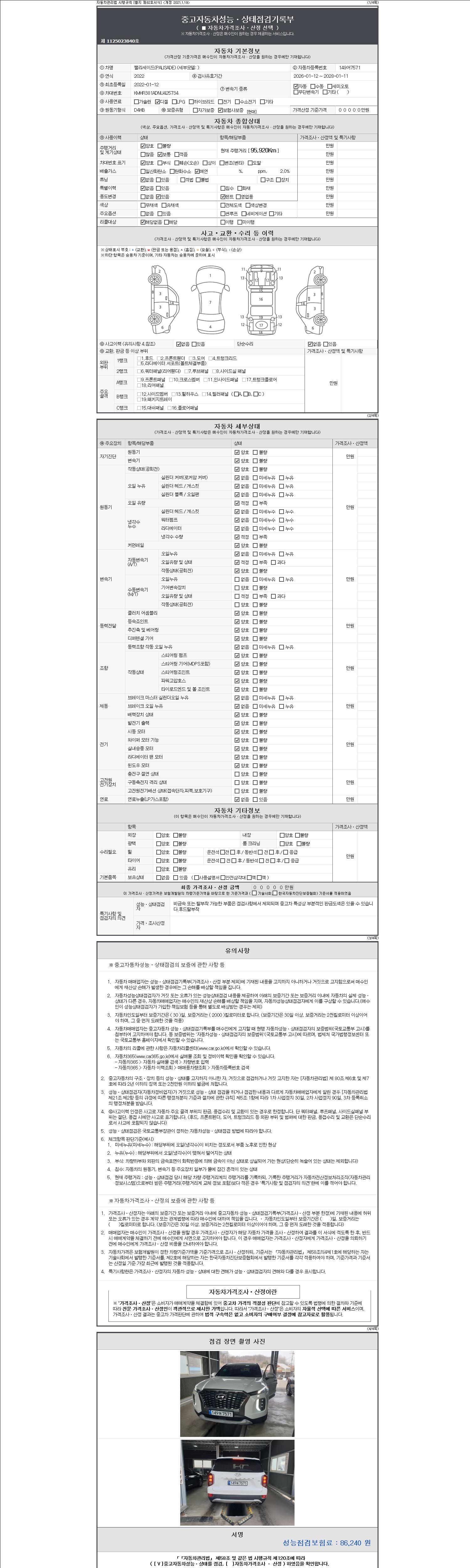 | 주행거리 | 95,902 km | 차량번호 | 149어7571 | 사고유무 | 성능기록부 참조 | 제시번호 | 제 2147483647 호 |