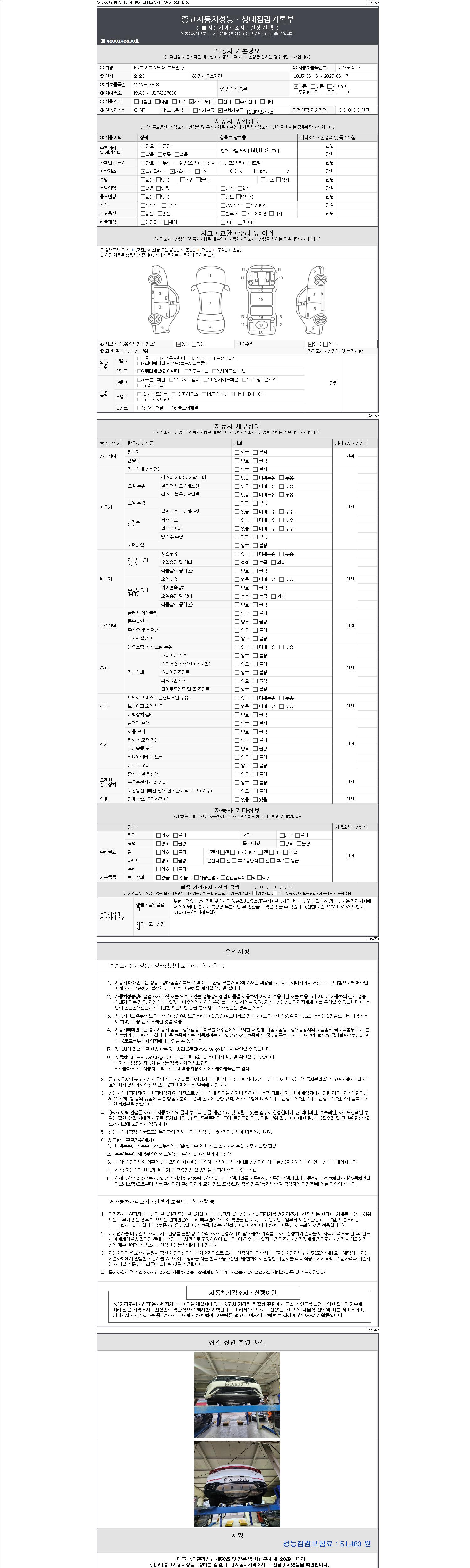 - 사고유무 : 성능기록부 참조