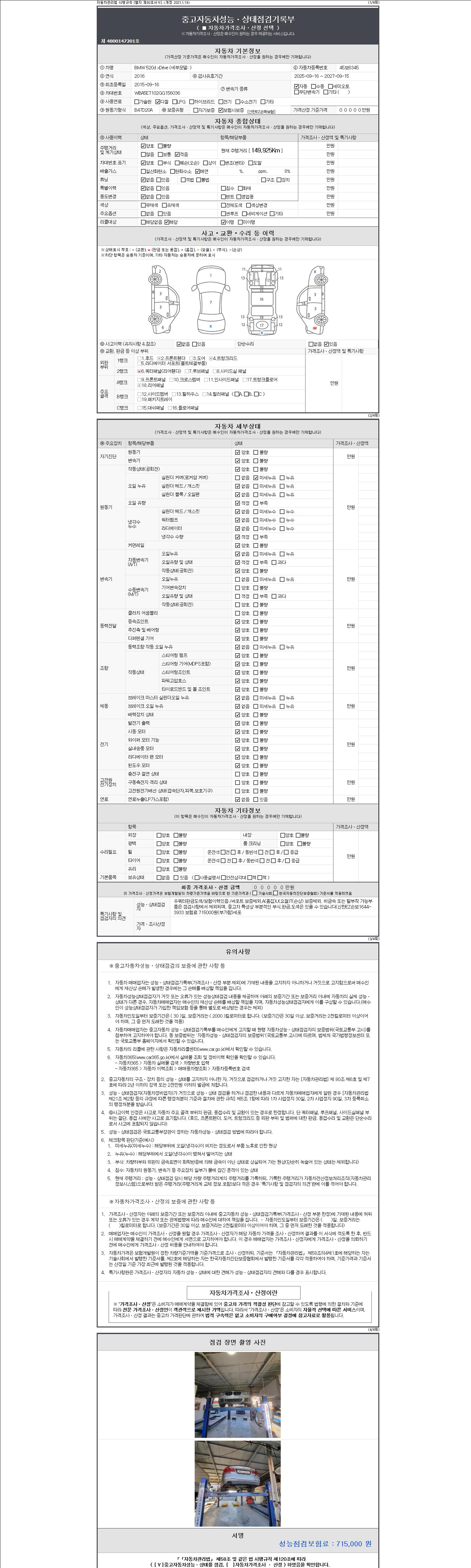 -중고자동차 매매업자를 통해 차량을 구입하실 경우 반드시 "중고자동차 성능, 상태점검 기록부"를 교뷰 받으셔야 하며, 매매업자는 반드시 의무 교부 하여야 압니다.