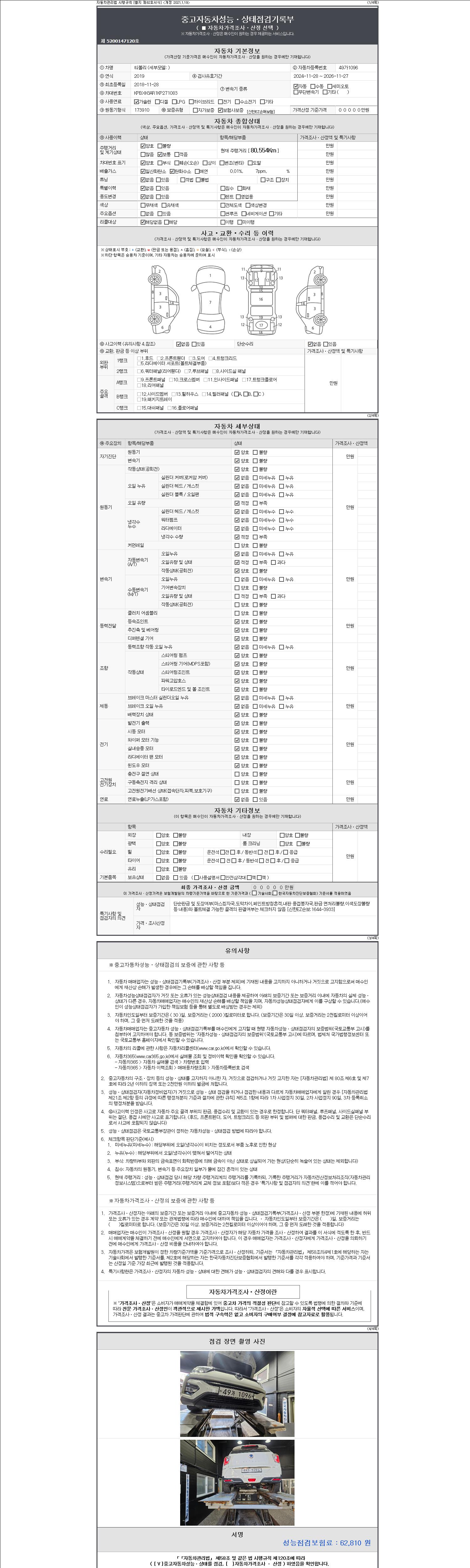 - 사고유무 : 성능기록부 참조