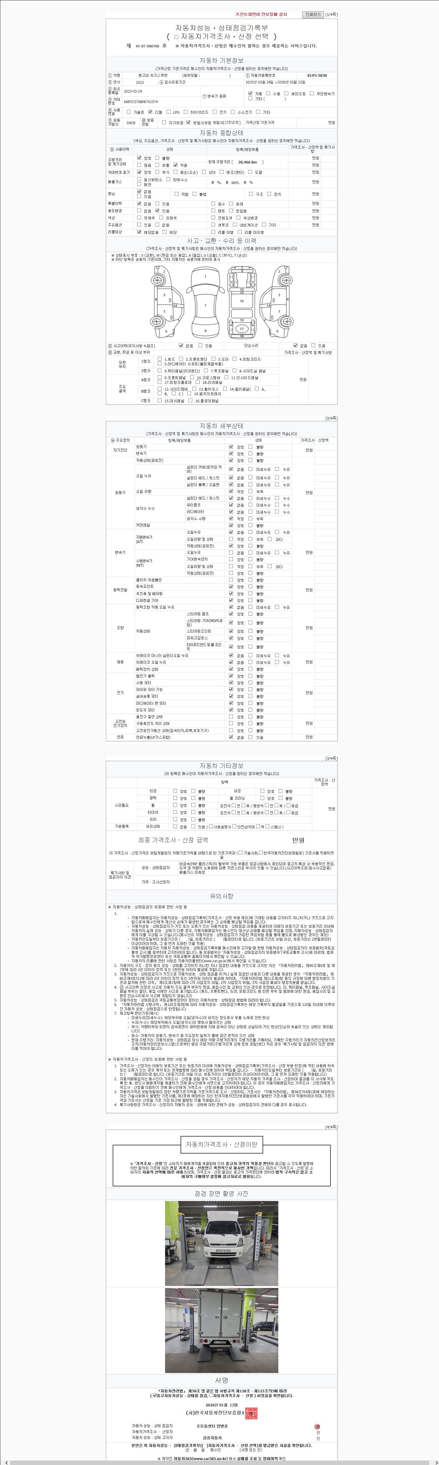 | 주행거리 | 38,466 km | 차량번호 | 819누5030 | 사고유무 | 성능기록부 참조 | 제시번호 | 제 2147483647 호 |