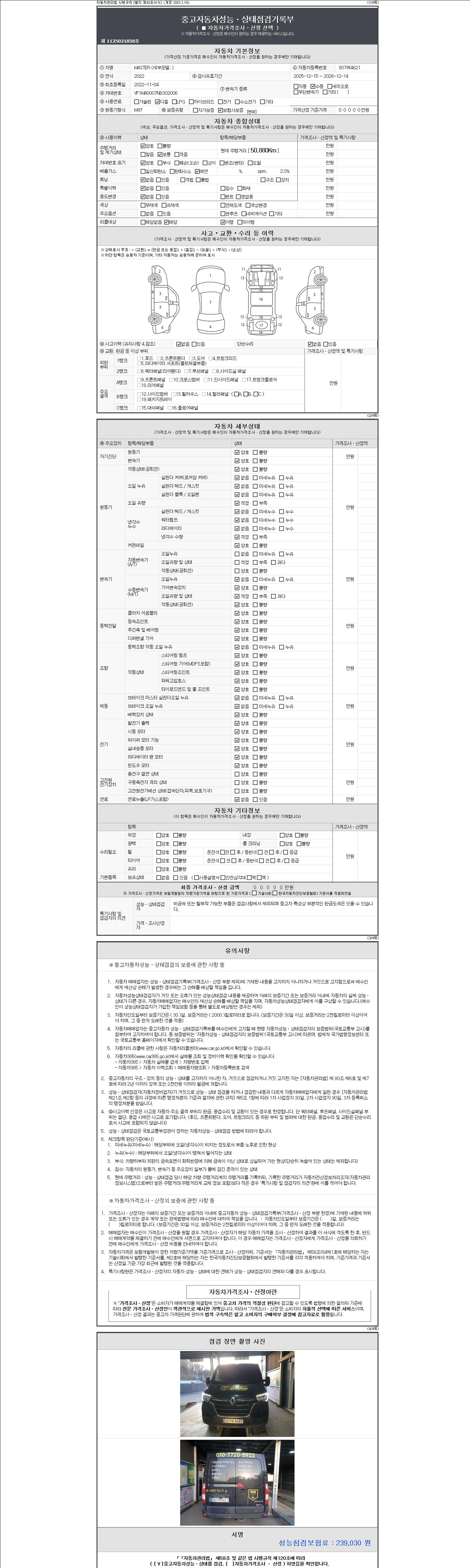 - 사고유무 : 성능기록부 참조