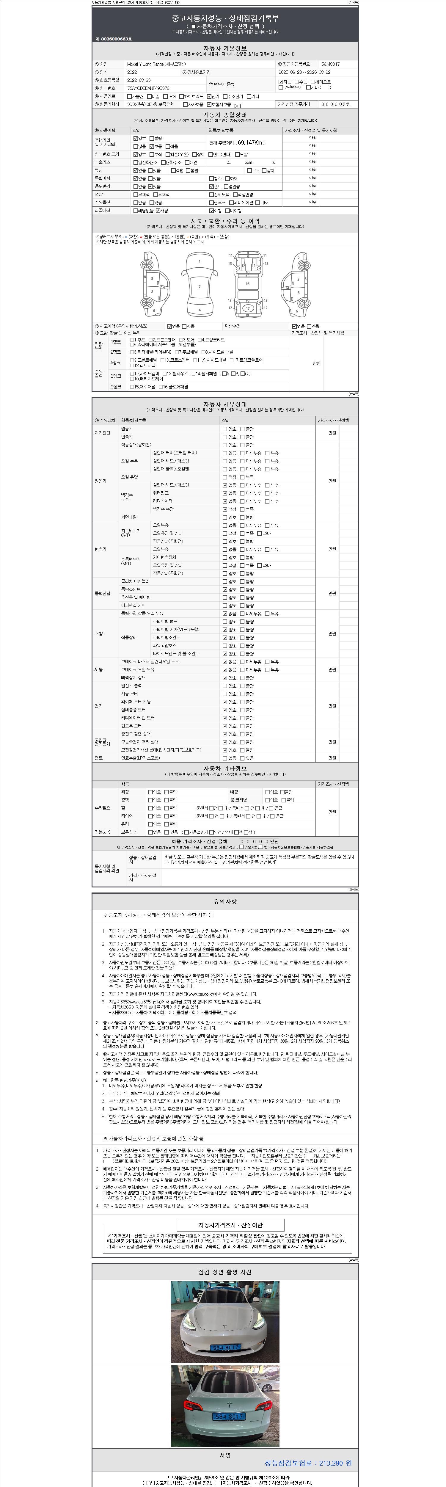 | 주행거리 | 69,147 km | 차량번호 | 58서8017 | 사고유무 | 성능기록부 참조 | 제시번호 | 제 2147483647 호 |