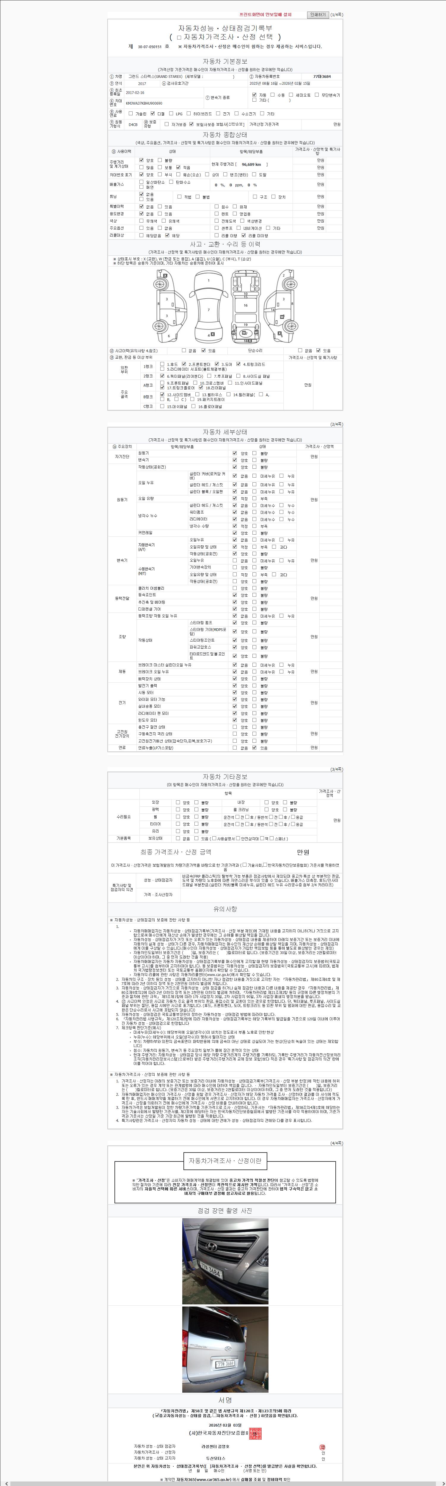 - 2. 차량 등록증이나 성능점검지 등을 상담자에게 요청및 확인하시고 사전에 미리 점검 하시기를 권유드립니다.