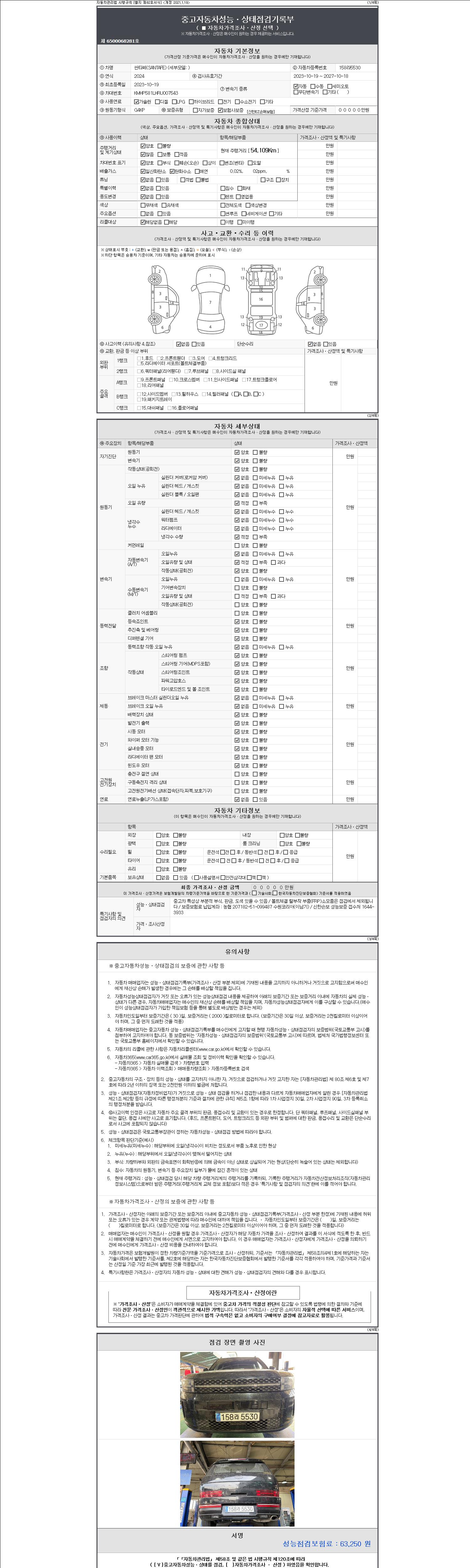 | 주행거리 | 54,109 km | 차량번호 | 158라5530 | 사고유무 | 성능기록부 참조 | 제시번호 | 제 2147483647 호 |