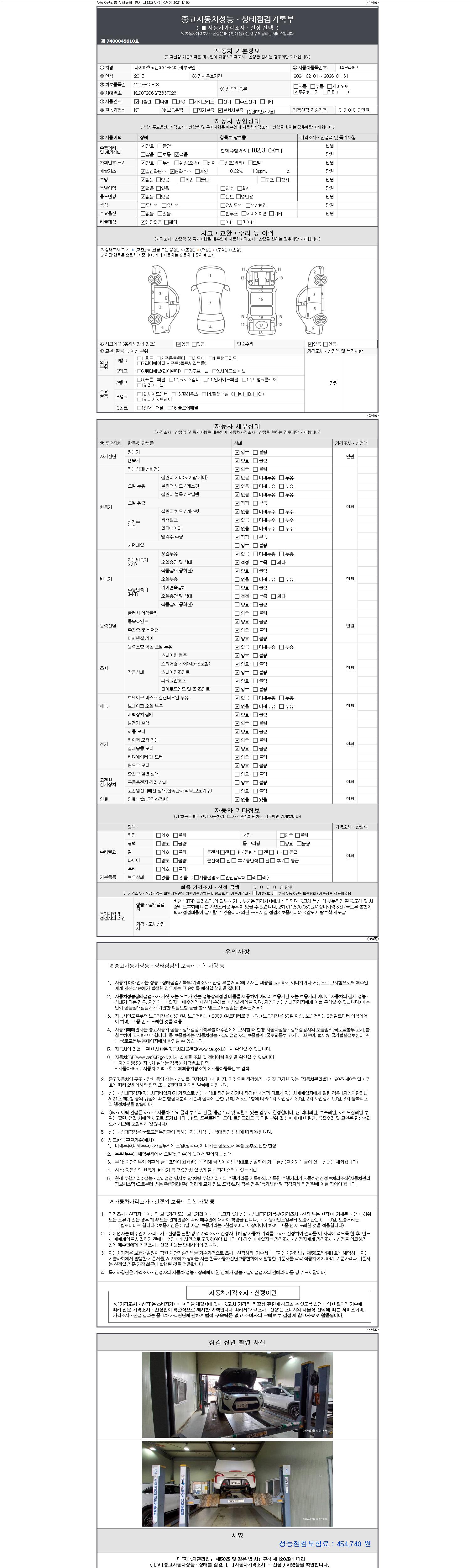 | 주행거리 | 102,310 km | 차량번호 | 14모4662 | 사고유무 | 성능기록부 참조 | 제시번호 | 제 2147483647 호 |
