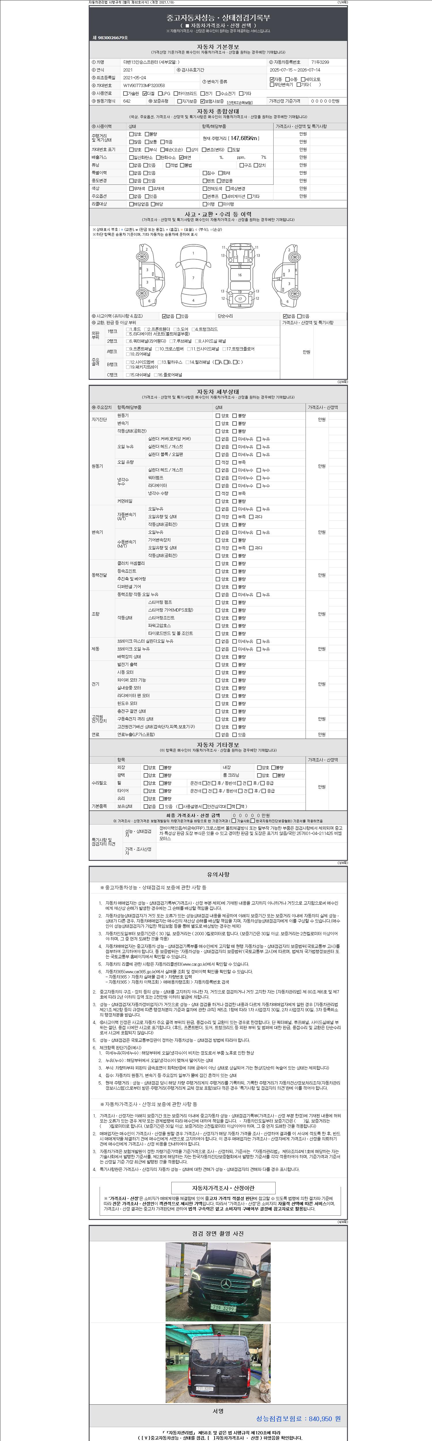 | 주행거리 | 147,685 km | 차량번호 | 71두3299 | 사고유무 | 성능기록부 참조 | 제시번호 | 제 2147483647 호 |