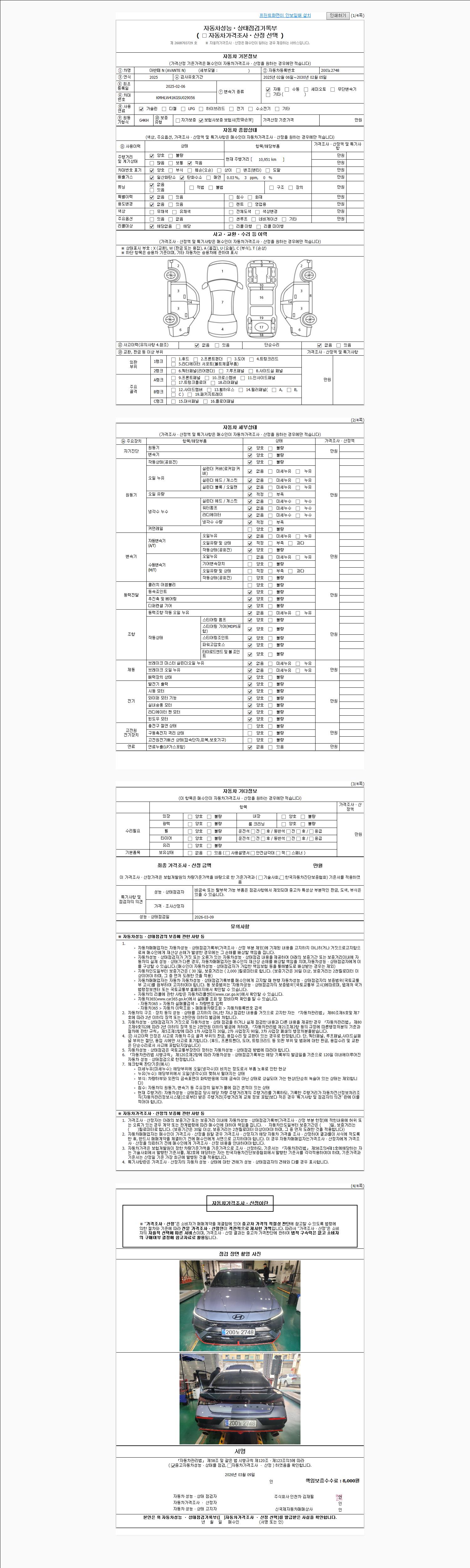 | 주행거리 | 10,951 km | 차량번호 | 200노2748 | 사고유무 | 성능기록부 참조 | 제시번호 | 제 2026011741 호 |