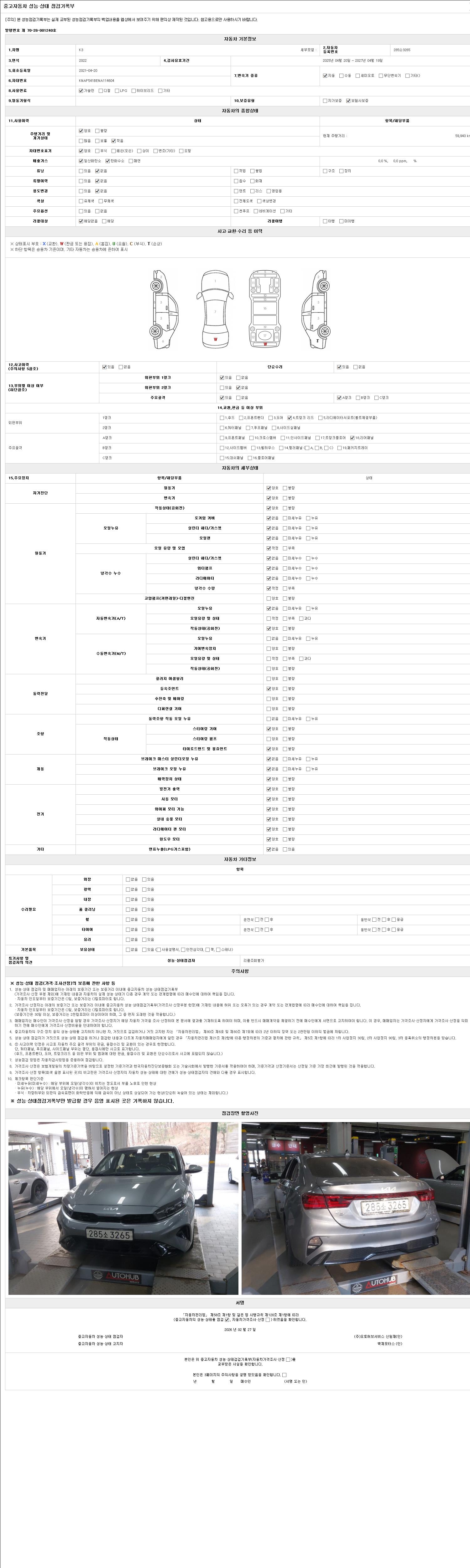 - 2. 차량 등록증이나 성능점검지 등을 상담자에게 요청및 확인하시고 사전에 미리 점검 하시기를 권유드립니다.