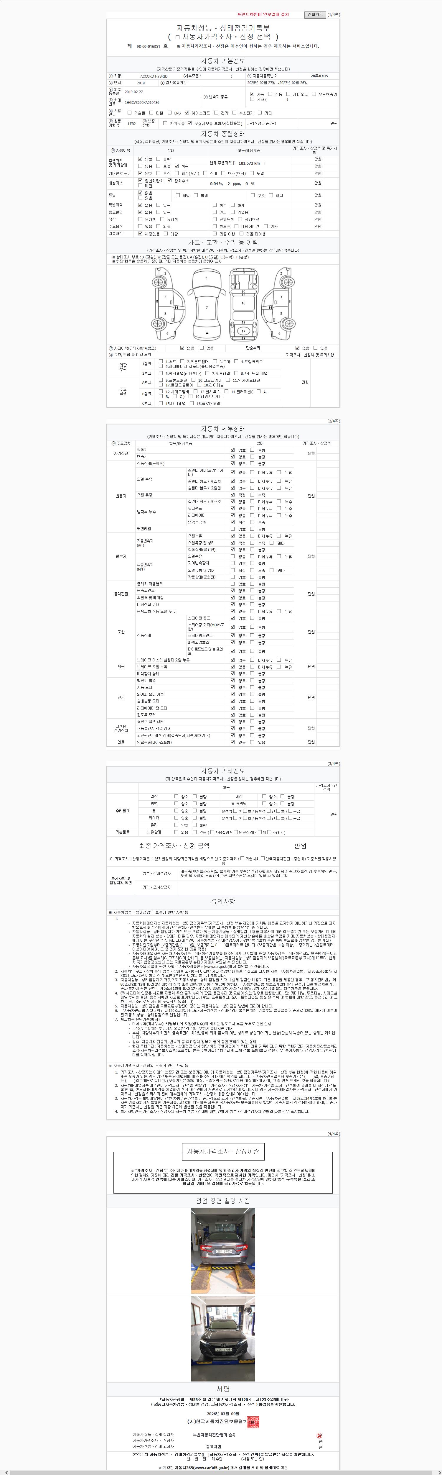 - 사고유무 : 성능기록부 참조