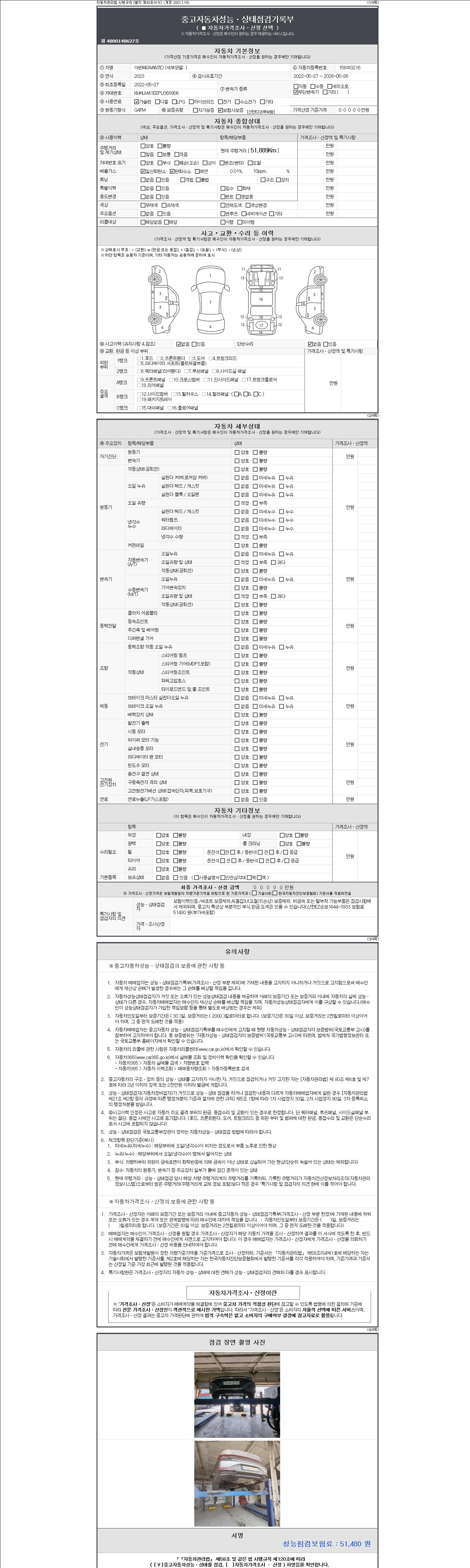 - 사고유무 : 성능기록부 참조