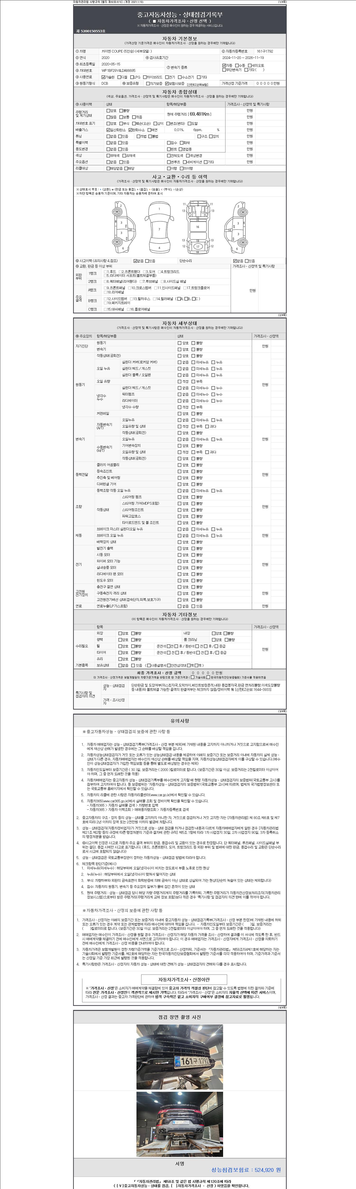 | 주행거리 | 69,481 km | 차량번호 | 161구1792 | 사고유무 | 성능기록부 참조 | 제시번호 | 제 2147483647 호 |