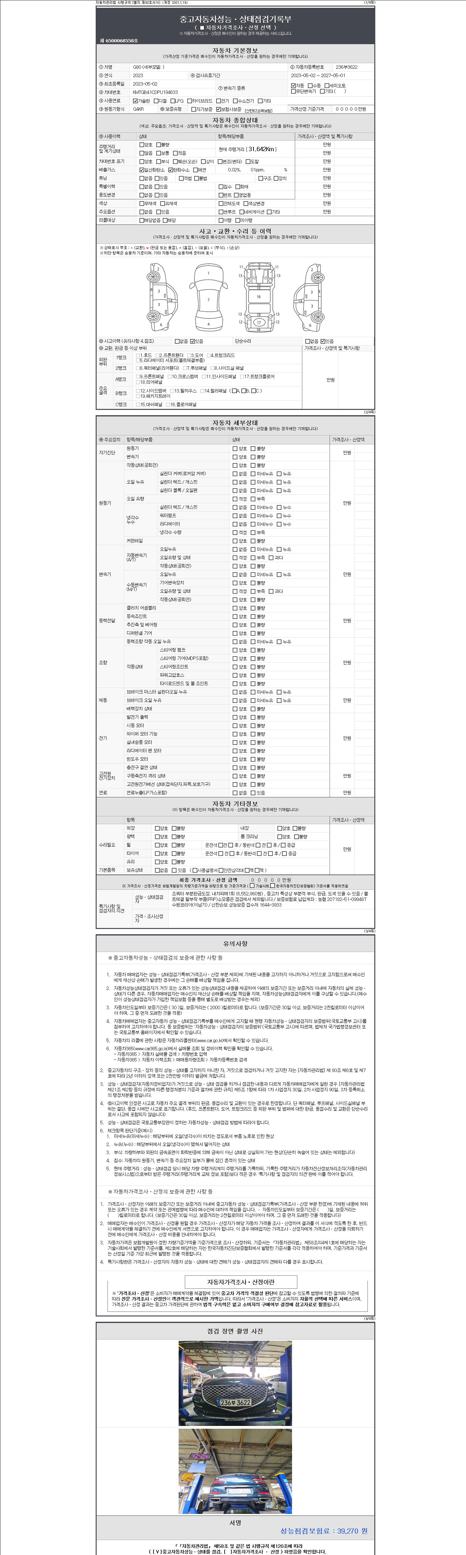 - 2. 차량 등록증이나 성능점검지 등을 상담자에게 요청및 확인하시고 사전에 미리 점검 하시기를 권유드립니다.