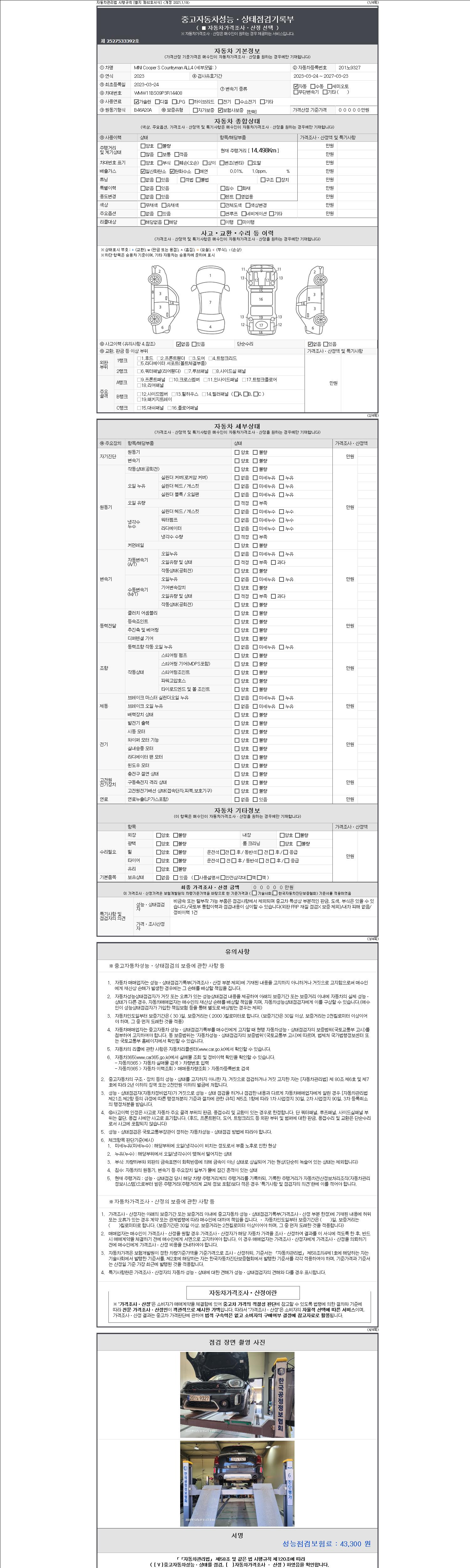 - 2. 차량 등록증이나 성능점검지 등을 상담자에게 요청및 확인하시고 사전에 미리 점검 하시기를 권유드립니다.