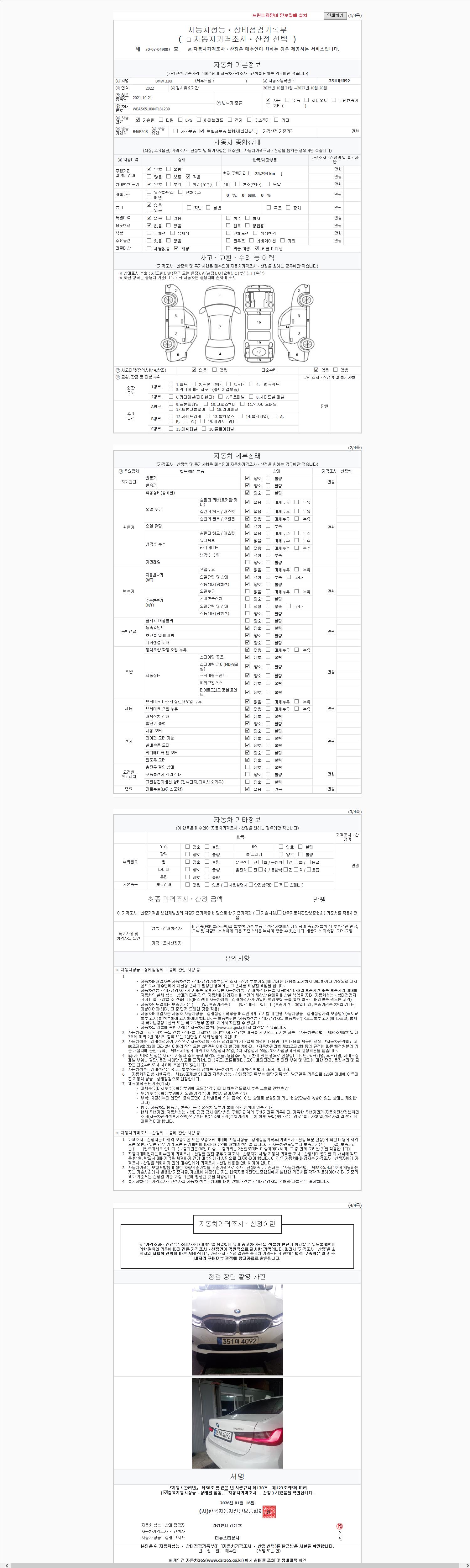 | 주행거리 | 25,794 km | 차량번호 | 351마4092 | 사고유무 | 성능기록부 참조 | 제시번호 | 제 2147483647 호 |