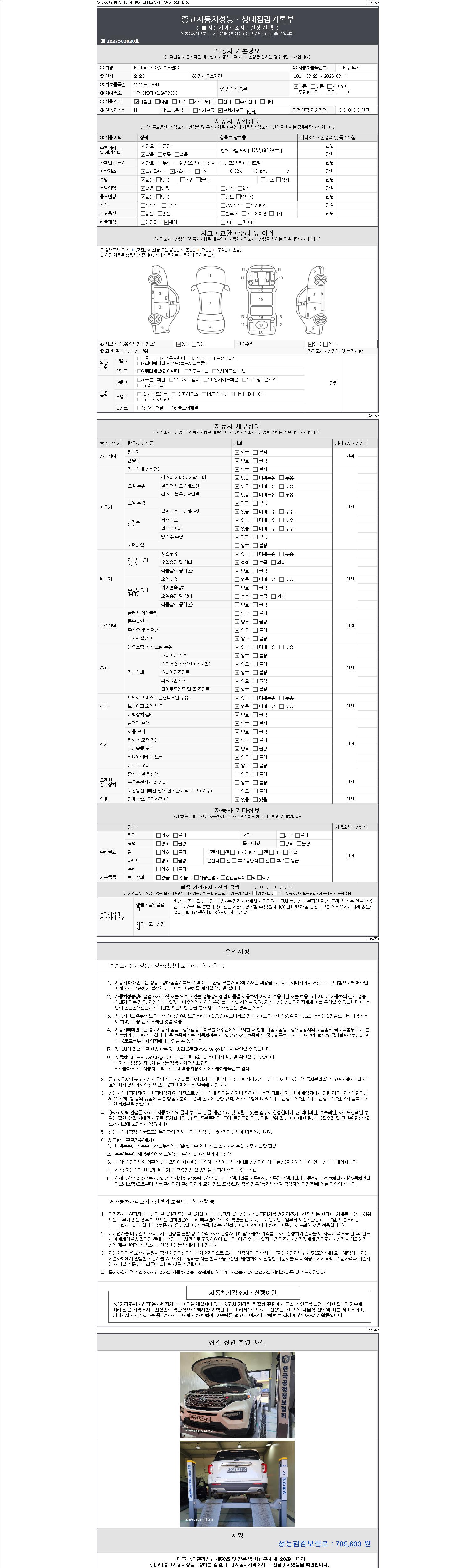 | 주행거리 | 122,609 km | 차량번호 | 399무9450 | 사고유무 | 성능기록부 참조 | 제시번호 | 제 2147483647 호 |