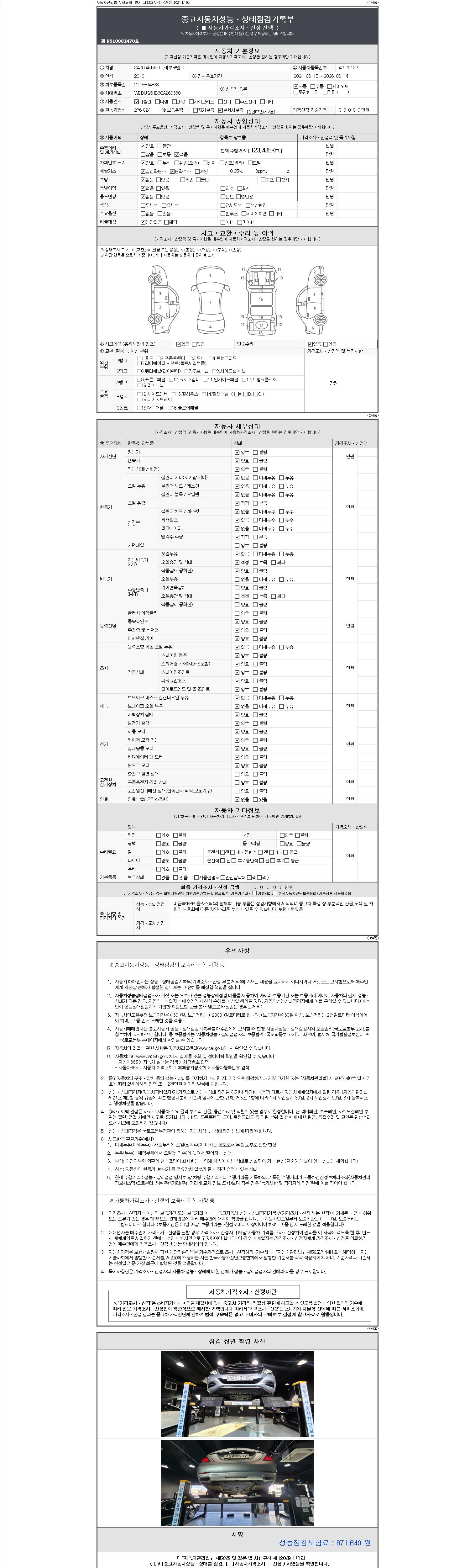 -중고자동차 매매업자를 통해 차량을 구입하실 경우 반드시 "중고자동차 성능, 상태점검 기록부"를 교뷰 받으셔야 하며, 매매업자는 반드시 의무 교부 하여야 압니다.