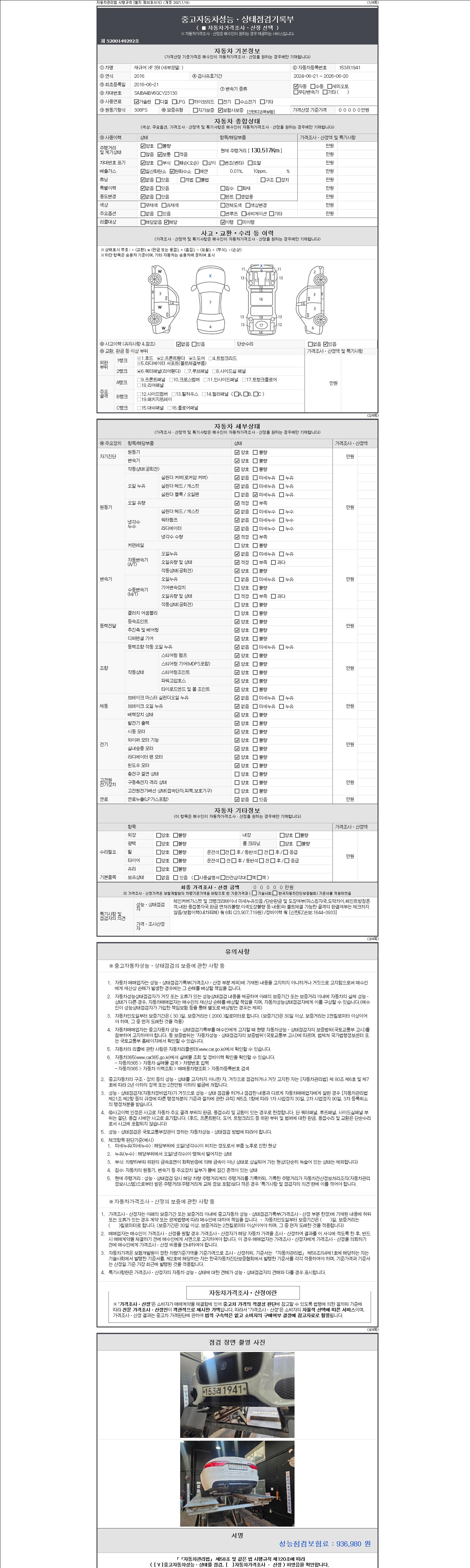 - 사고유무 : 성능기록부 참조