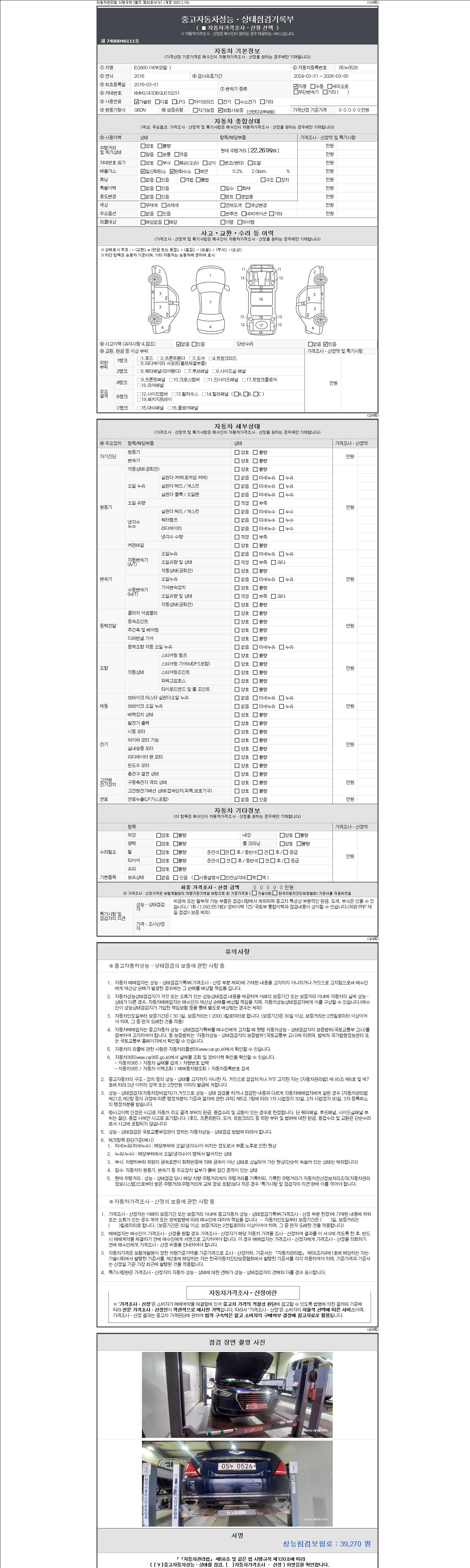 | 주행거리 | 22,261 km | 차량번호 | 05누0526 | 사고유무 | 성능기록부 참조 | 제시번호 | 제 2147483647 호 |