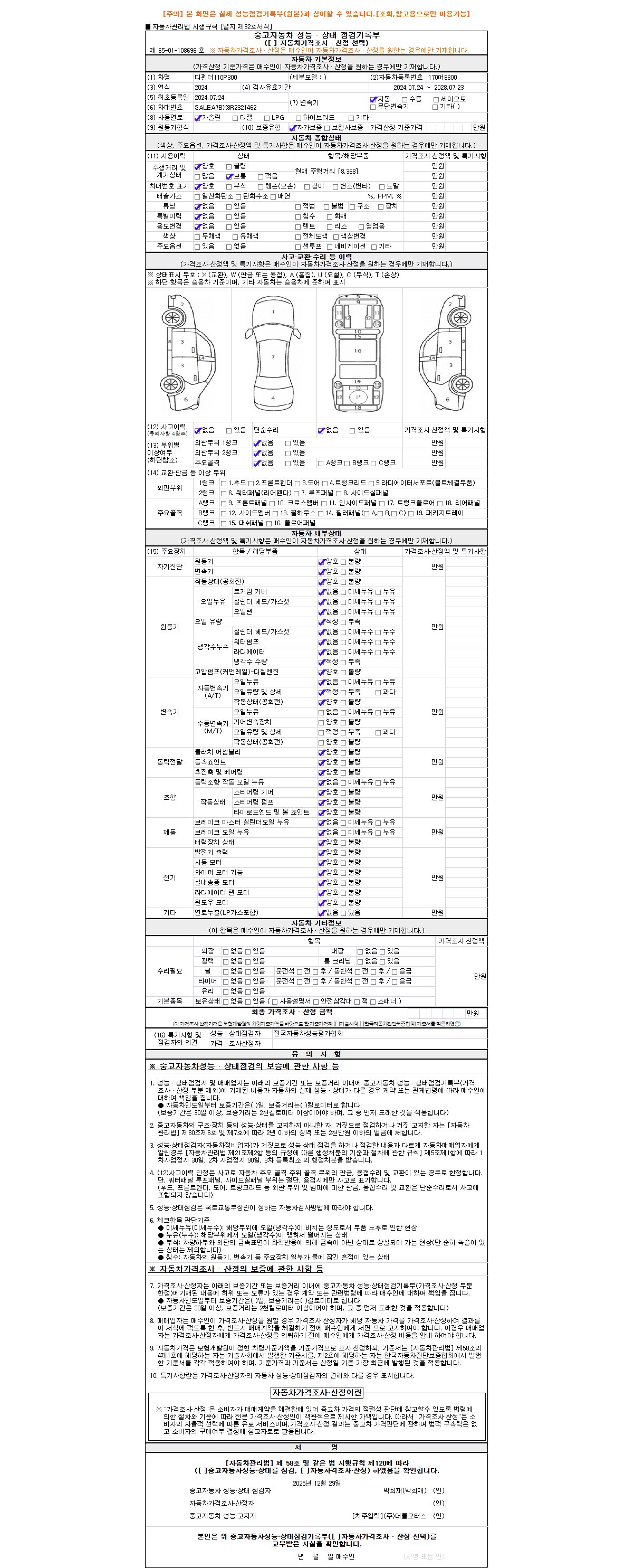 - 2. 차량 등록증이나 성능점검지 등을 상담자에게 요청및 확인하시고 사전에 미리 점검 하시기를 권유드립니다.