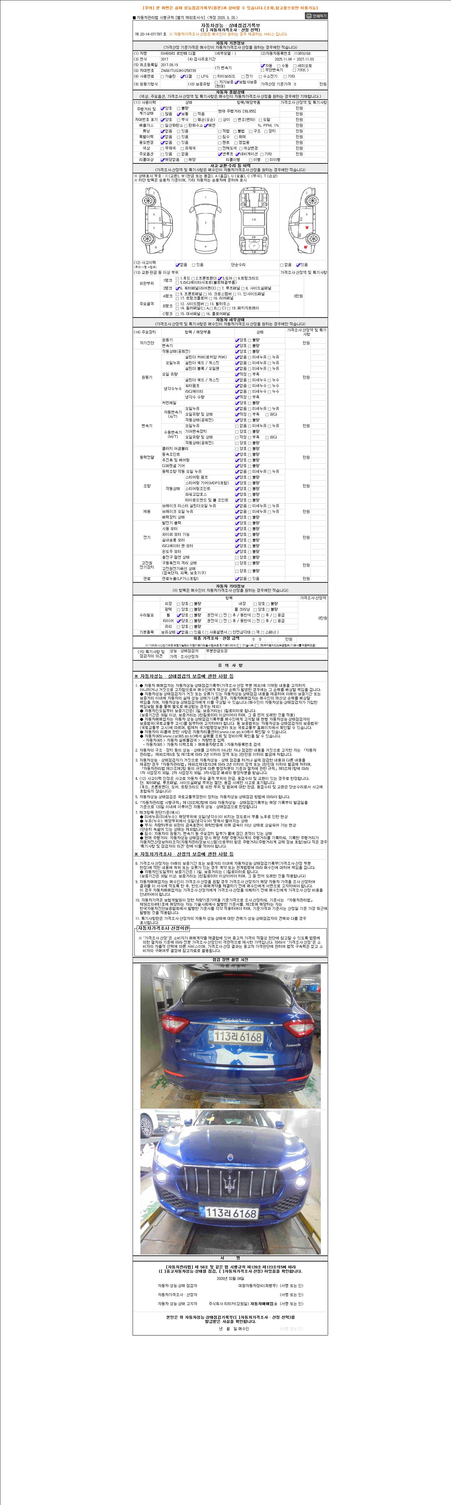 | 주행거리 | 99,700 km | 차량번호 | 113러6168 | 사고유무 | 성능기록부 참조 | 제시번호 | 제 2026013971 호 |