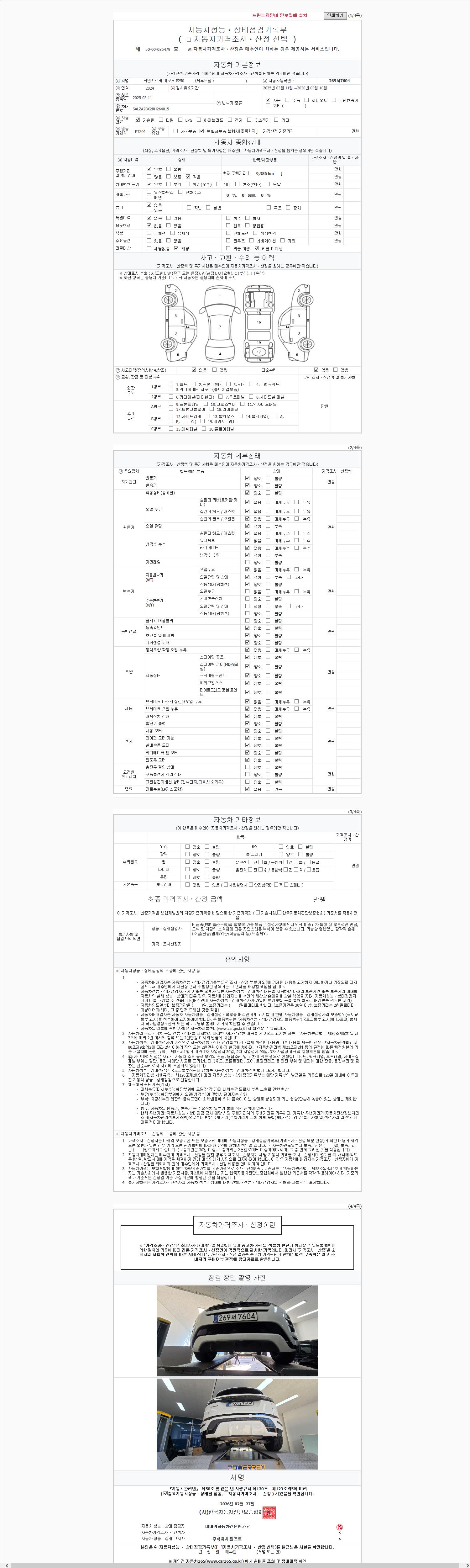 | 주행거리 | 9,386 km | 차량번호 | 269서7604 | 사고유무 | 성능기록부 참조 | 제시번호 | 제 2147483647 호 |